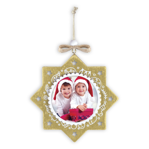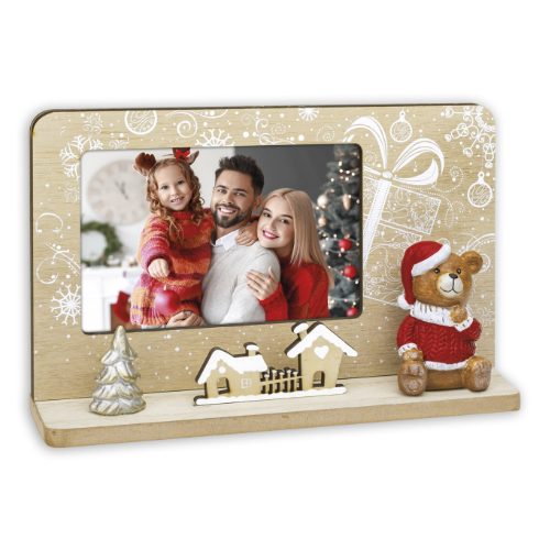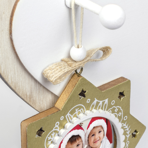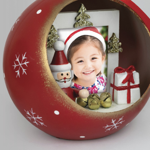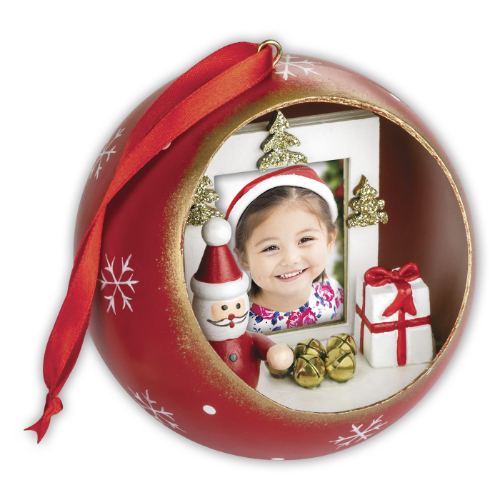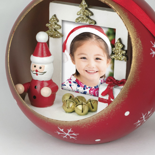 Sfera decorata con all'interno cornice in legno e decori 3D