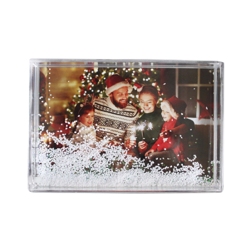 Frame in Plexiglas con acqua e fiocchi di neve fluttuanti
