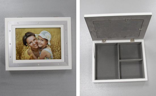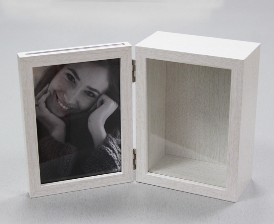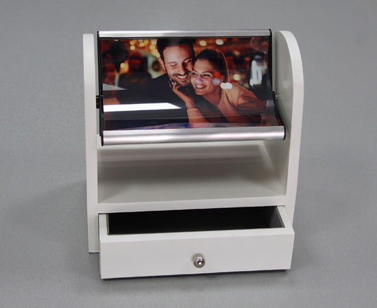 - - Cofanetto portafoto in legno con 3 foto rotanti manualmente