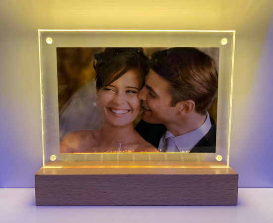 - - Portafoto in legno bianco e plexiglass con chiusura magnetica